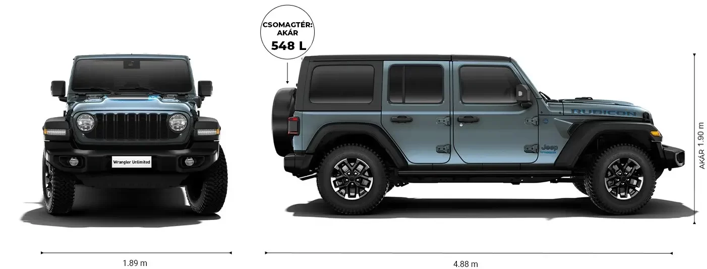 Jeep® Wrangler üzemanyag-fogyasztás (l/100 km): 11,9 – 11,1; CO2-kibocsátás (g/km): 269-250. A homologizáció előtti adatokat WLTP eljárás (EU 2018/1832-es rendelete alapján) szerint vizsgáltuk.